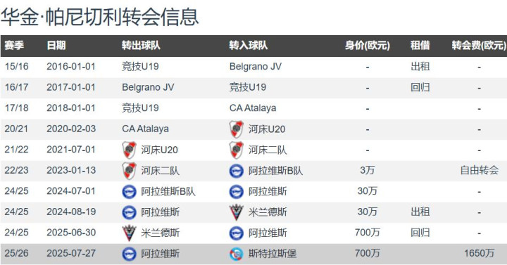 帕尼切利现年23岁,身高1.90米,右脚中锋,德转估价1200万欧元牛客栈策略,相信下一次德转更新,帕尼切利的身价会大幅度提升。阿根廷国家队就是缺乏像帕尼切利这样的高中锋,喜欢逼抢和对抗,这是阿根廷的B计划,世界杯真心要带上帕尼切利,面对铁桶阵和密集防守,或许上一位1.90米的帕尼切利会有奇效,也可以丰富的阿根廷进攻打法。